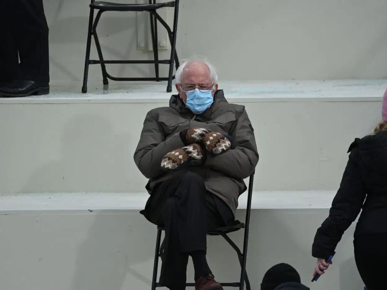 Bernie Sanders Reacts To Inauguration Mittens Meme - Bernie Sanders Mittens Meme Creator